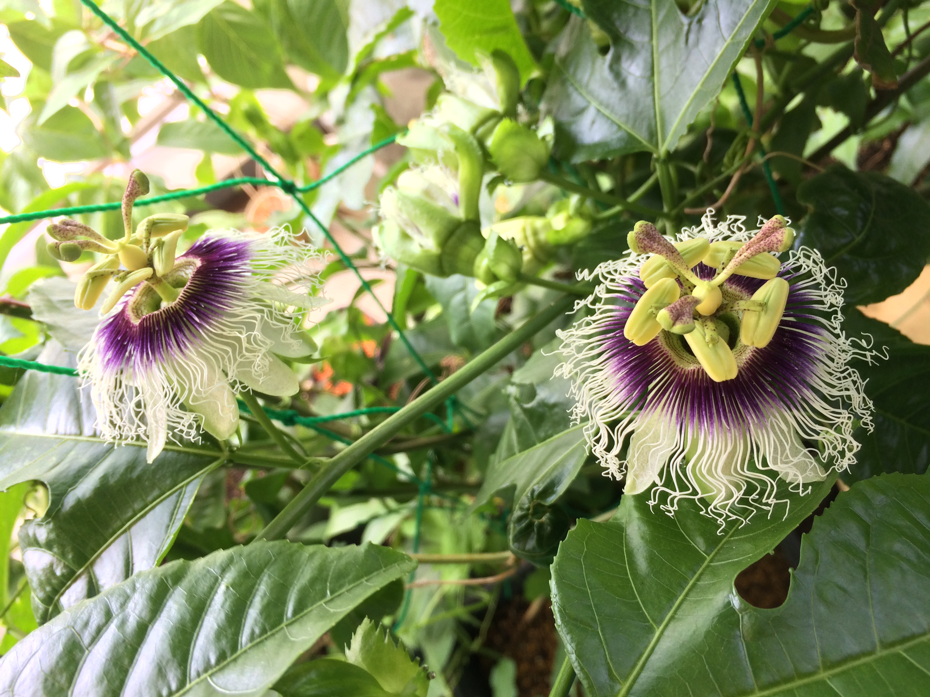 パッションフルーツの花と実。花はけっこうグロテスクw